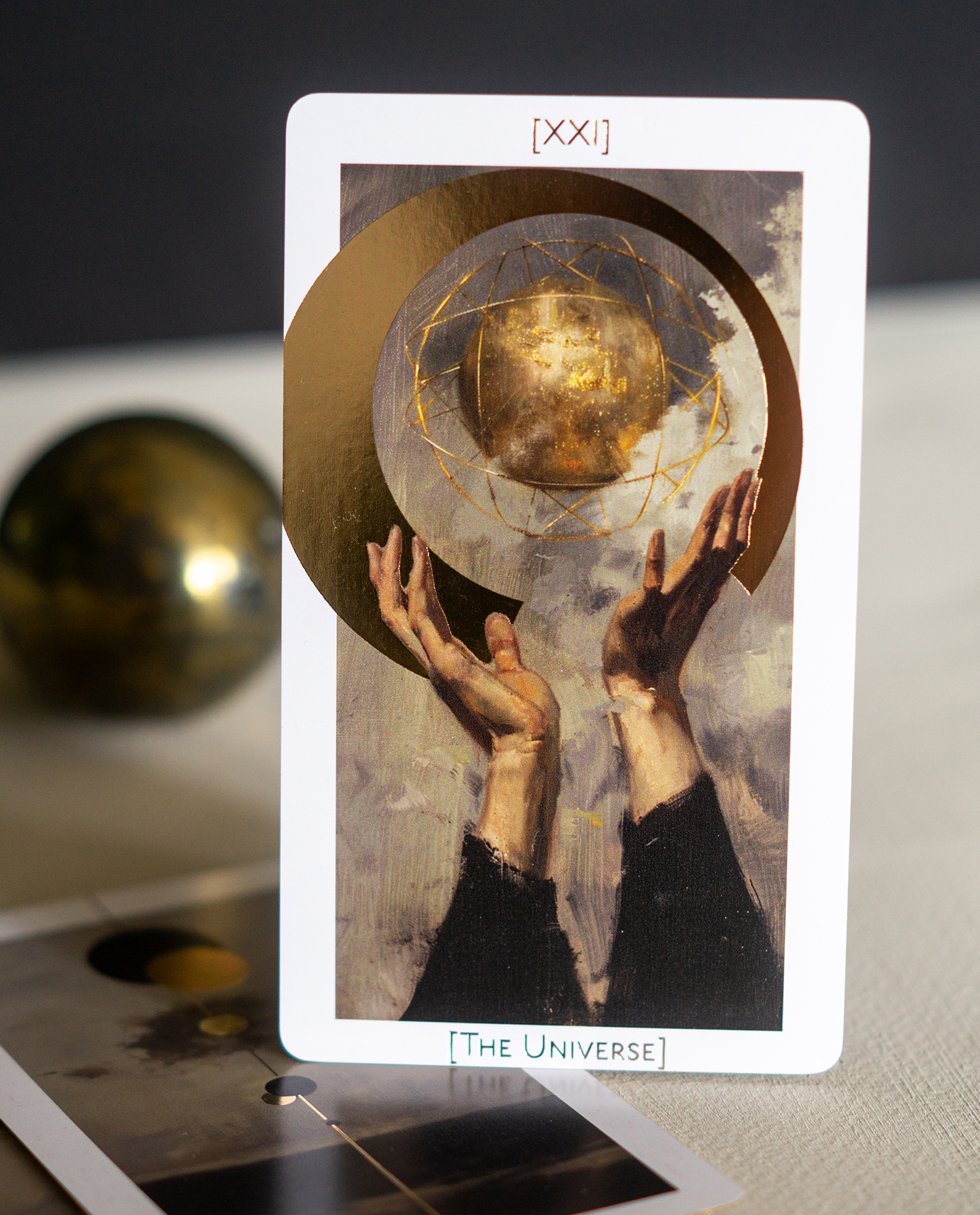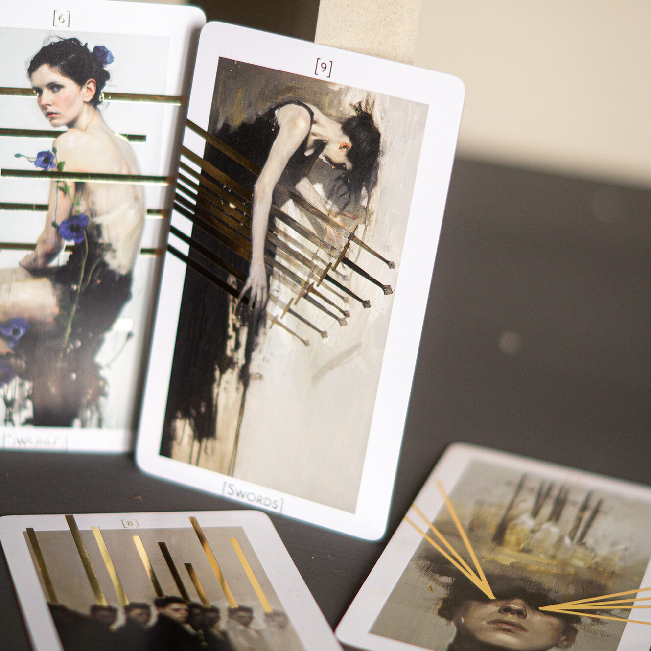The [ ] Tarot includes five exclusive cards: a mysterious [ ] card that symbolizes the split second of change and possibility, the moment winter turns into spring; And a [0] for each suit, representing the pause before potential, the void before creation. They’re not extra, they’re essential.